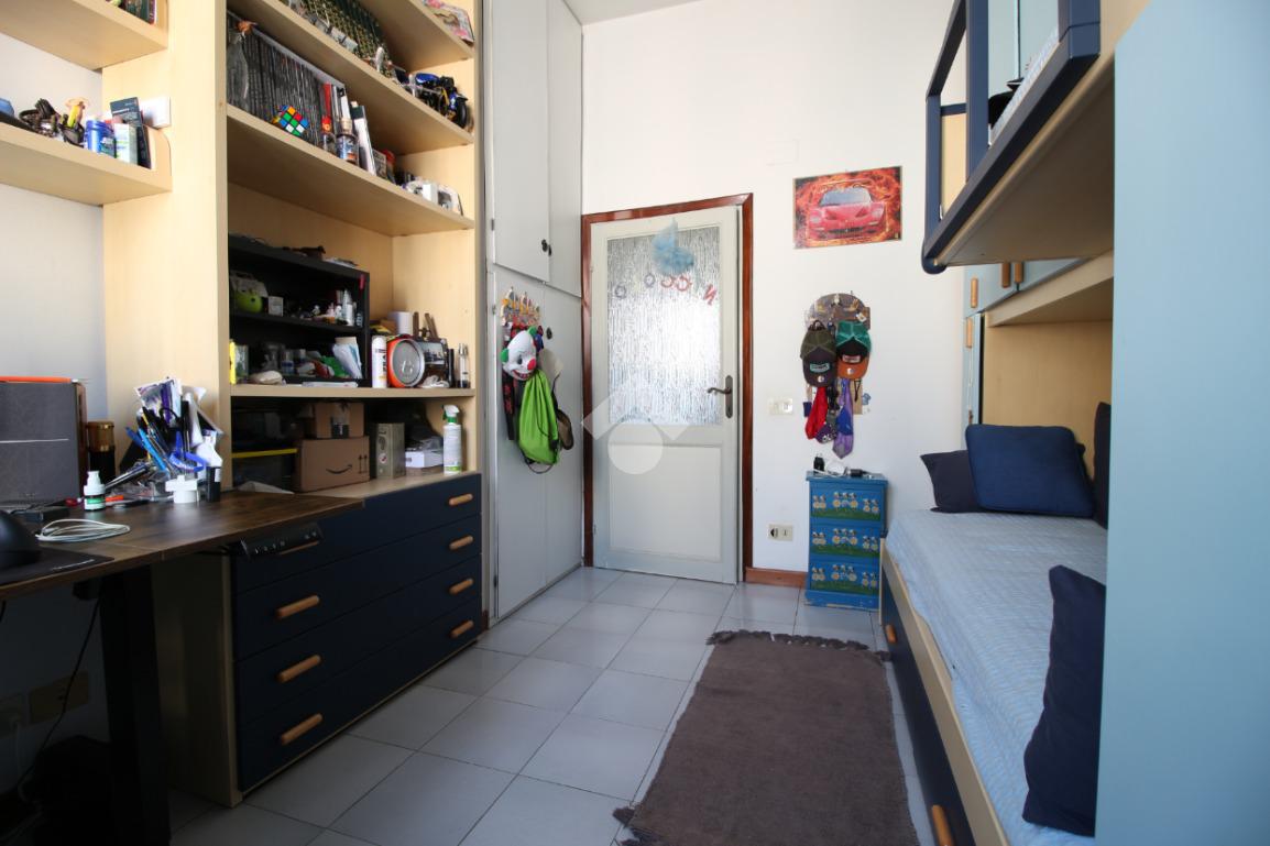 Internamente è composto da soggiorno e cucina abitabile uniti in un unico ambiente con accesso al balcone, tre camere da letto, studio oltre ai due servizi finestrati e una lavanderia.